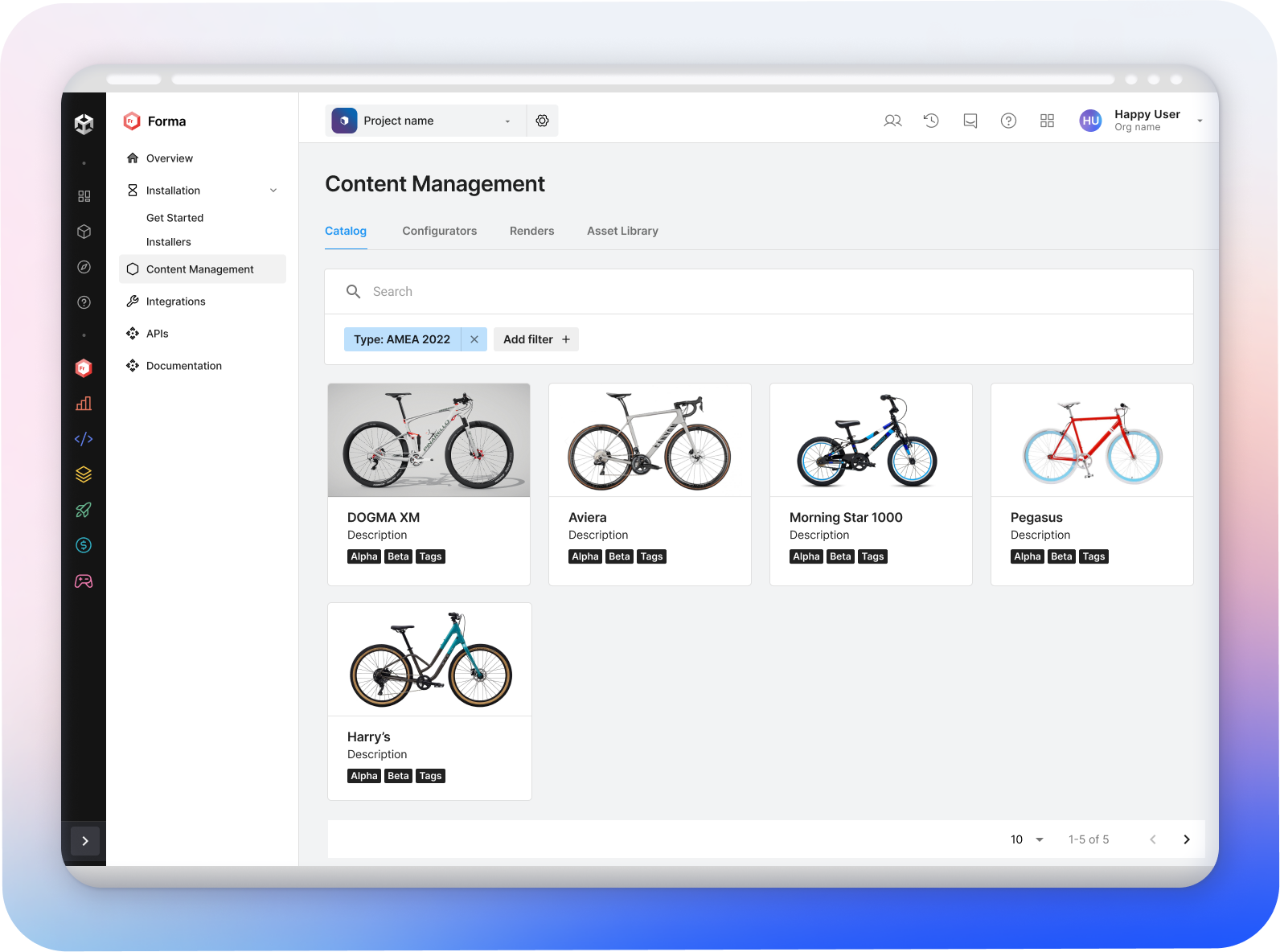 Forma Cloud end-to-end walkthrough, demonstrating how a bike company link, publish, manage new bike models for eCommerce.