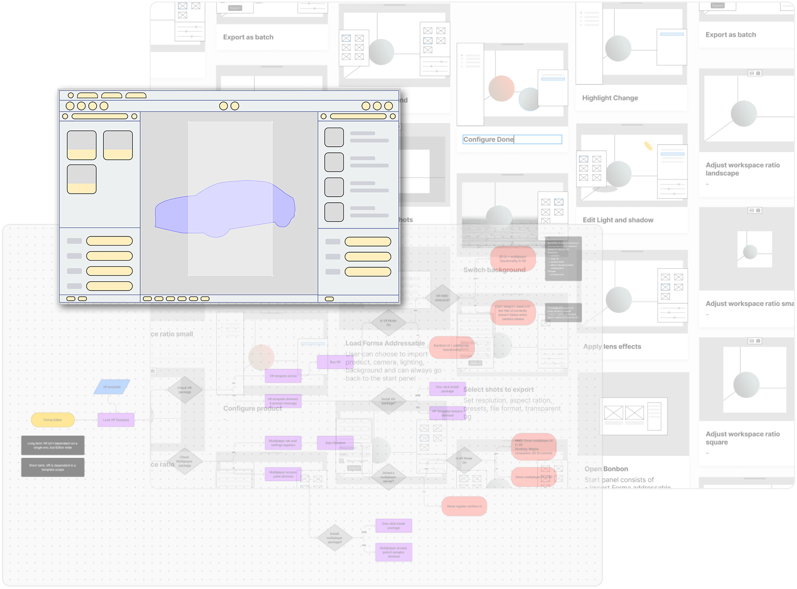 We derive the need of batch rendering from our data analytics leads and followup by interviews. We found marketing manager needs to create imagieries of hundreds of product type using the same three camera angels and in 4 different scenes resulting in thousands of images. This is a ground breaking feature with no pre-existing design pattern that I enjoy working on.