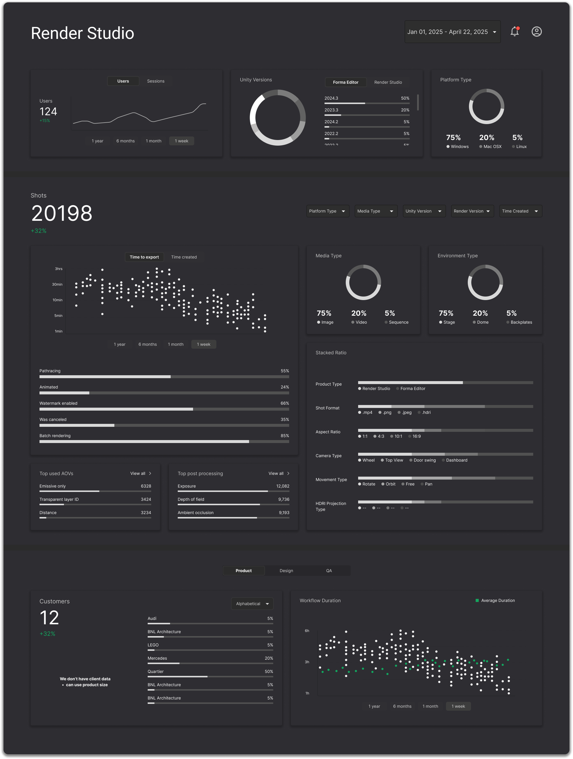 Leveraging my background in data engineering, I integrated analytics into Render Studio to transform how we evaluate design decisions. By defining and implementing research plan with the product team, I directly influenced the development of core features such as Batch Rendering and Simplified Camera Controls while providing the data-backed evidence for broader business strategies. To scale this impact, I spearheaded organization-wide workshops, building shared data literacy across the design organization.