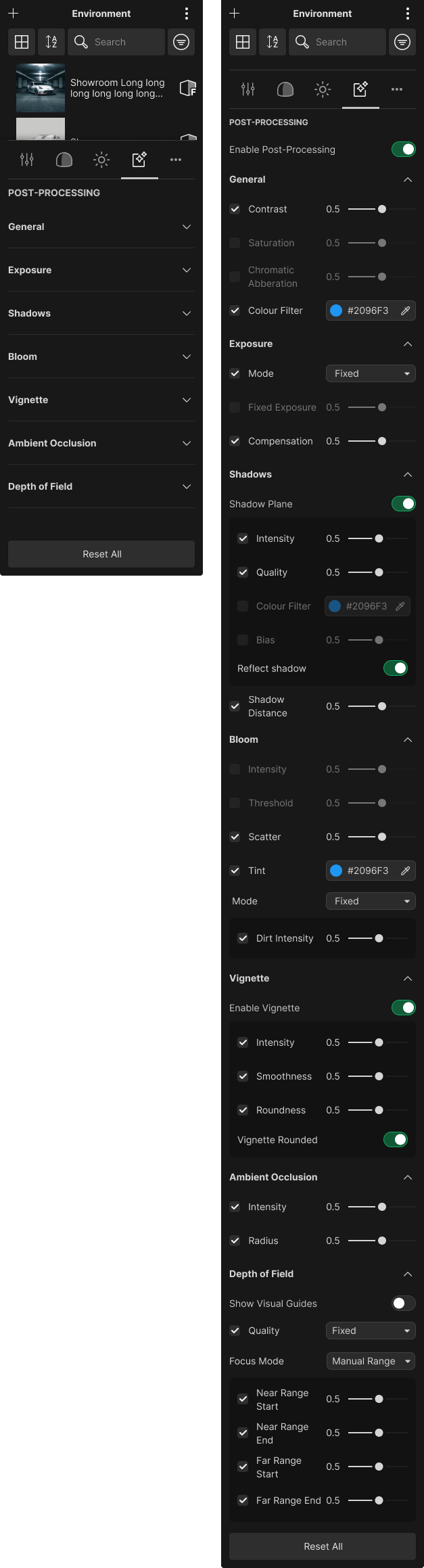 Here’s an example by extracting knowledge from out target groups, we are able to maintain the balance of complexity and usability of the Environment settings and Camera settings.